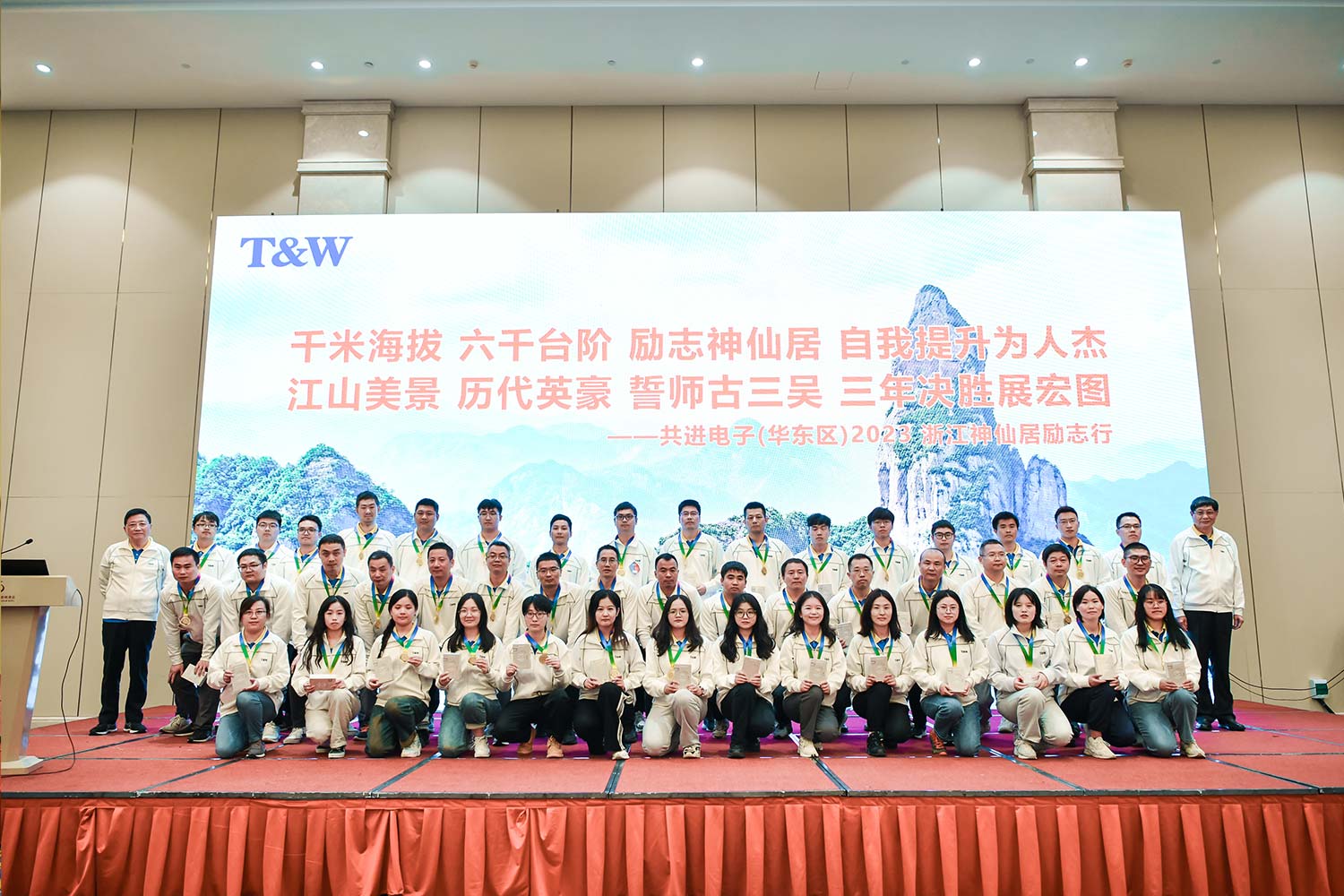 为培养合格人才,锤炼核心人才,发动公司全体员工勇扛压力,逆势奋发,精诚协作,誓达目标,10月13日至15日共进电子(华东区)在浙江台州、绍兴两地开展2023浙江神仙居励志行活动,攀登神仙居,游览绍兴古城,同时召开公司下半年工作动员大会。