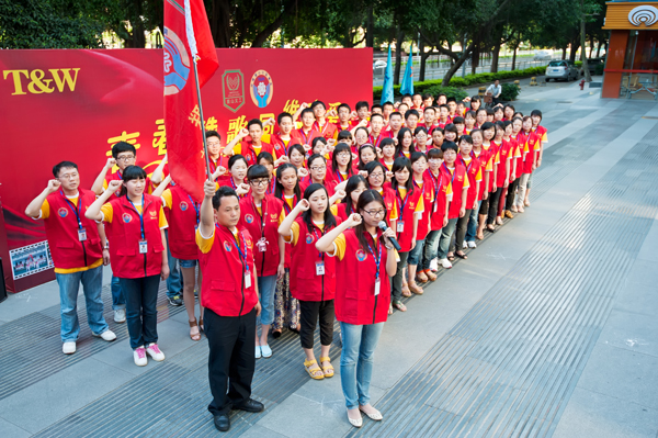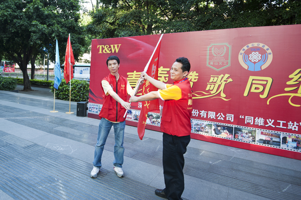会上,南山义工联负责人为公司义工站授旗,公司全体义工在义工旗帜下郑重宣誓,标志着公司秉承的“回馈社会”活动走向正规化。据悉, 同维义工站站长由谢丽宁担任,副站长由张婷担任。义工站下设3个队,同维新人义工队(试用期内),同维职员义工队,同维党员义工队。队长分别为,培训组(新人义工队)、余强(职员义工队)、王明贵(党员义工队)。截止到5月10日大会前已有94名同事正式加入“同维义工站”。